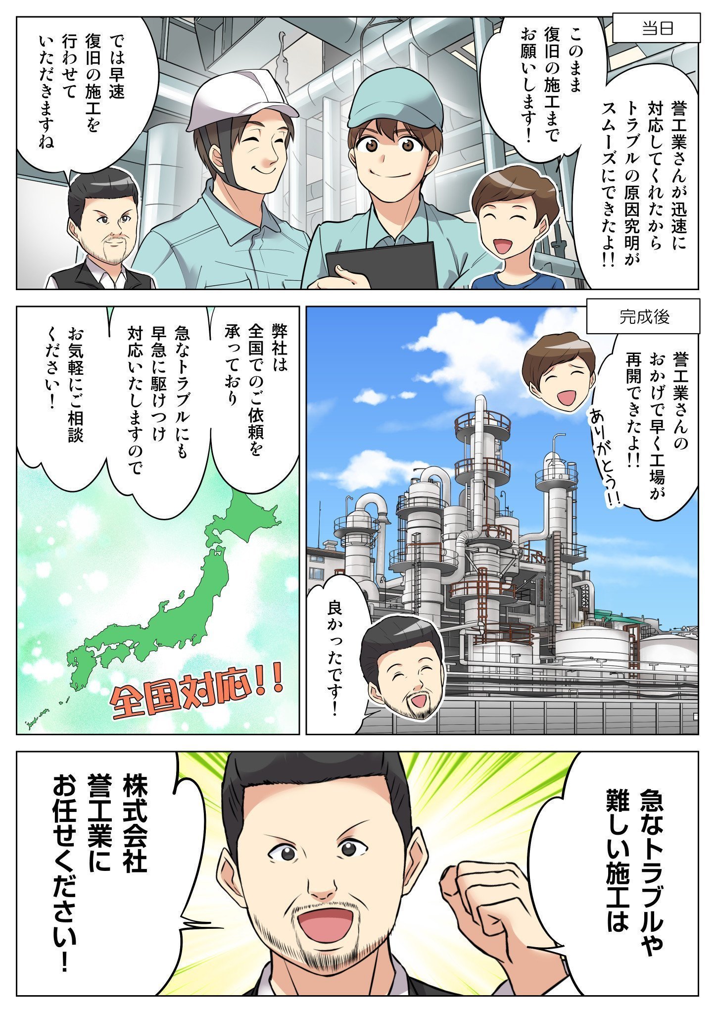 誉工業は急なトラブルにも柔軟に対応いたします